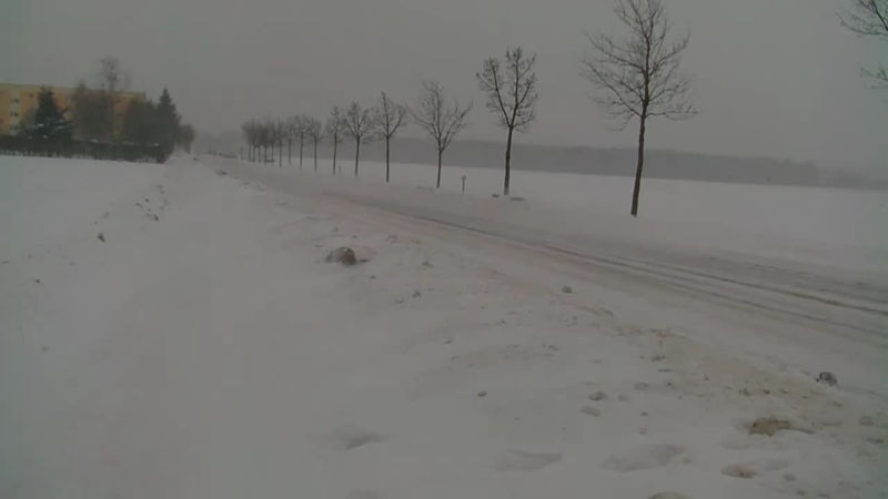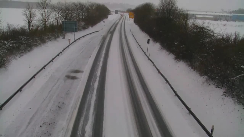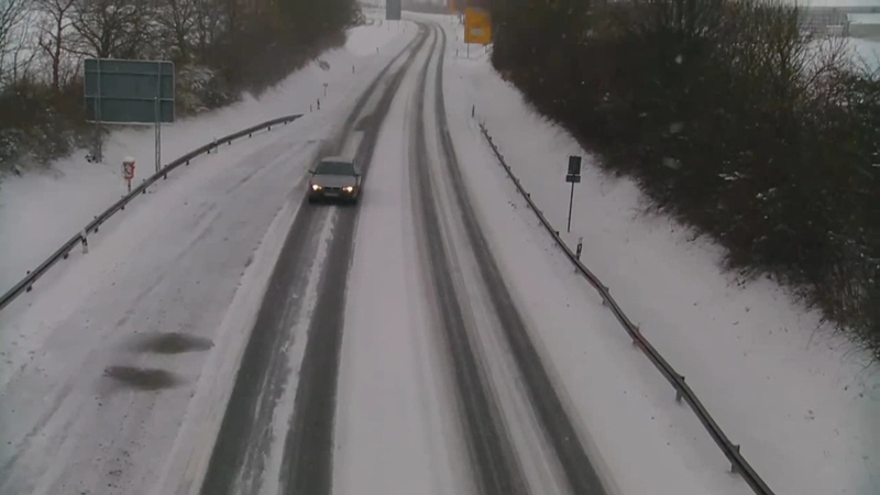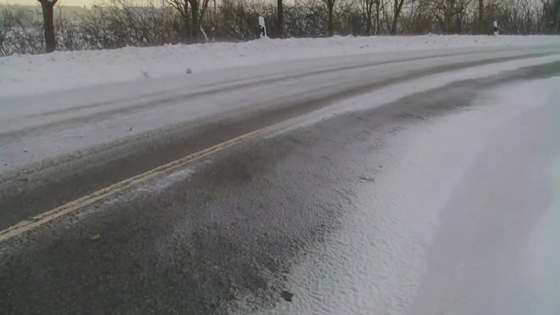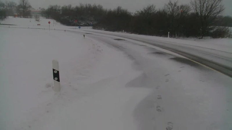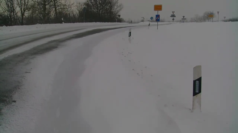 Durch starke Windböen und Neuschnee kam es auf den Straßen zu Schneeverwehungen.