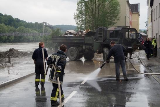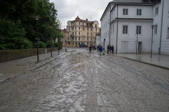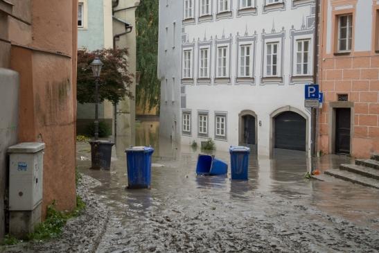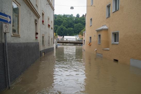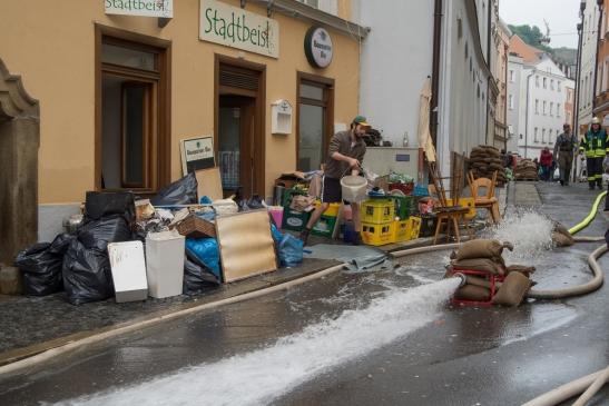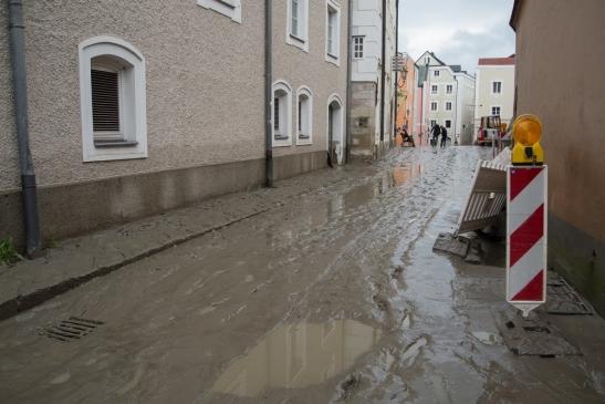 Nach tagelangem Dauerregen ist die Altstadt der niederbayerischen Dreiflüssestadt von Passau völlig überflutet. Die Donau stieg am Abend des 03.06.2013 auf 12,89 Meter und übertraf damit deutlich den höchsten Wasserstand seit über 500 Jahren. Schlamm, wohin man blickt. Auf den Straßen, in der Fußgängerzone und in den Geschäften. Auch einen Tag nach dem Höhepunkt war die Situation in Passau immer noch kritisch.