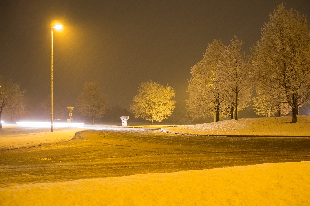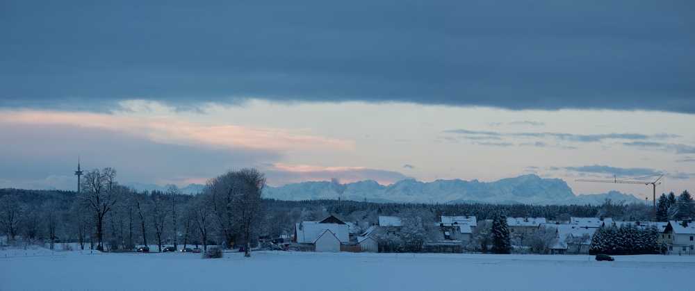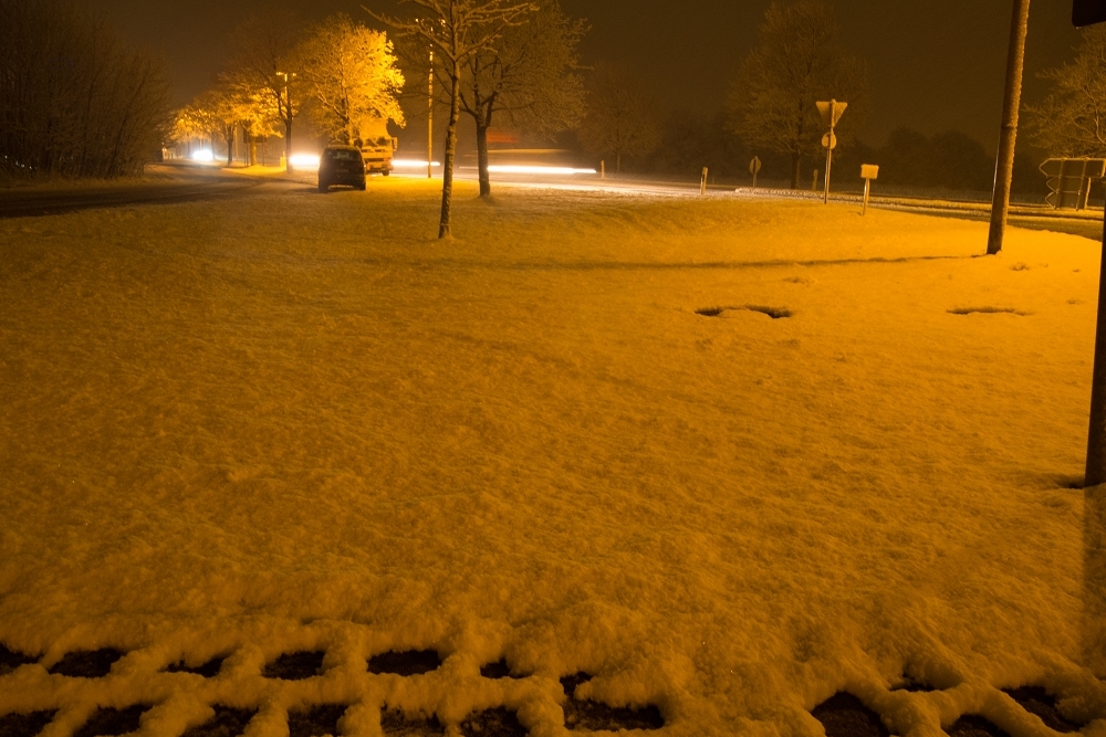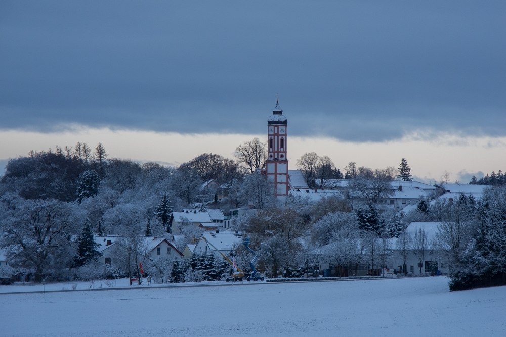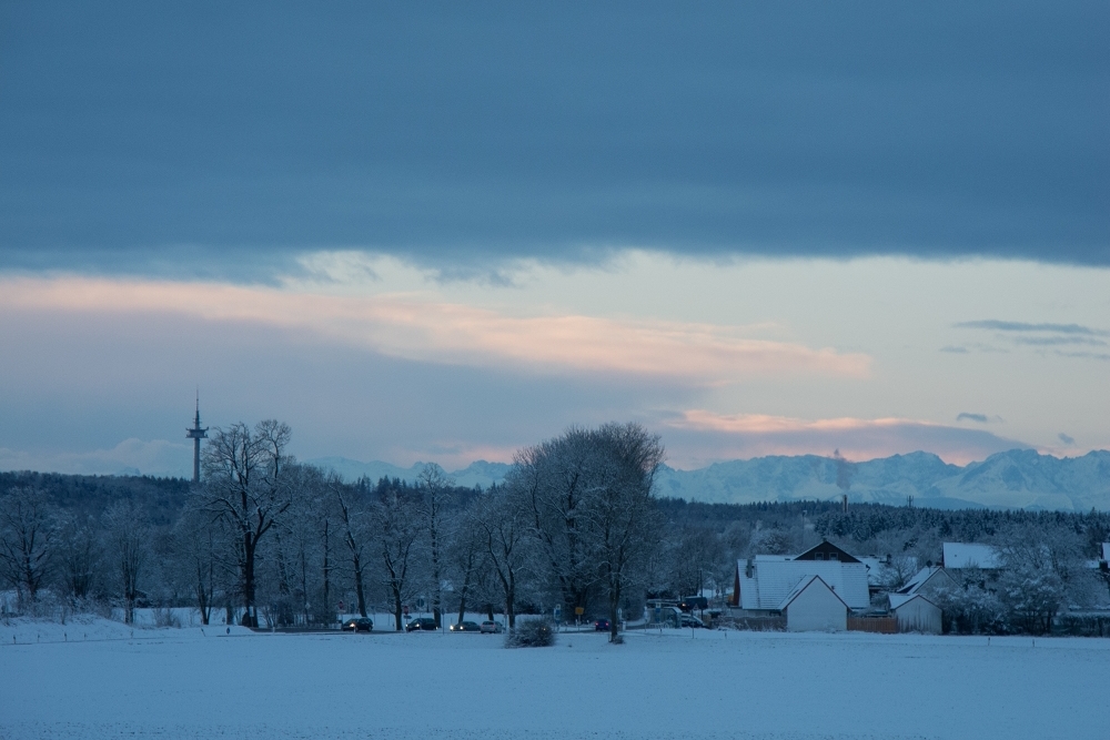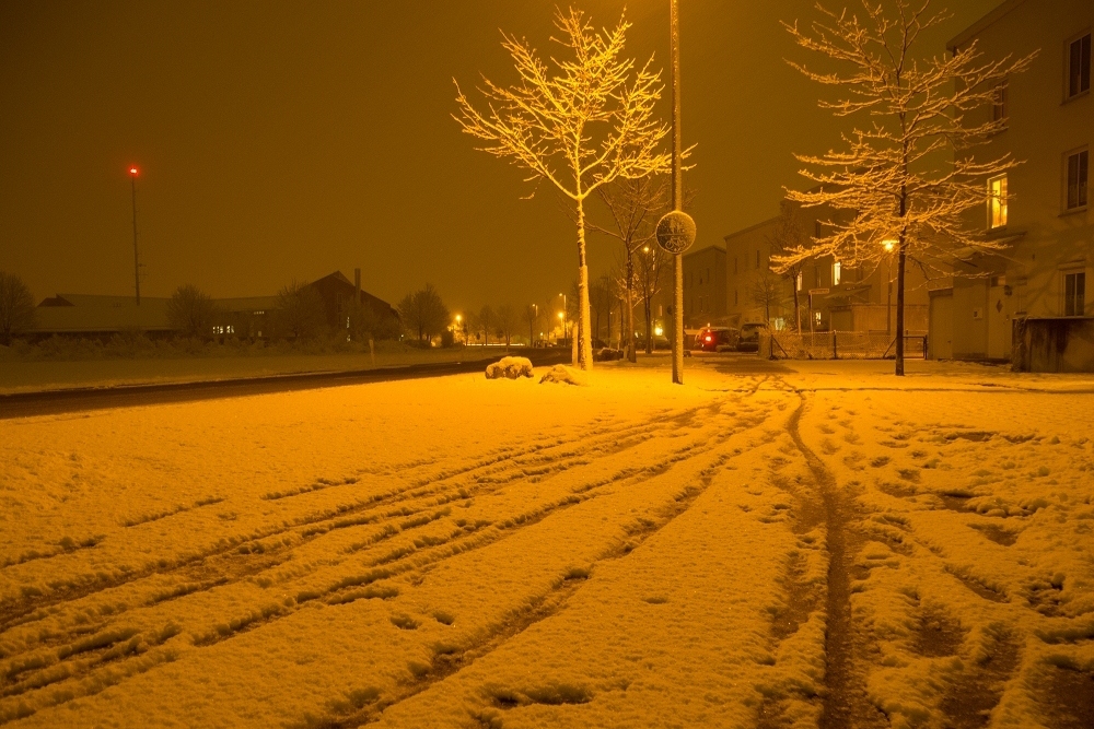 Nasser Neuschnee zum Abend in Fürstenfeldbruck: