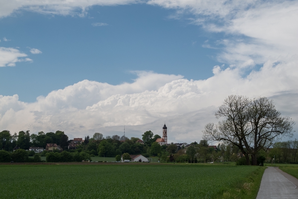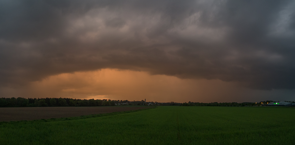 Von Westen nähert sich erneut eine Gewitterfront, Standort bei Maisach: