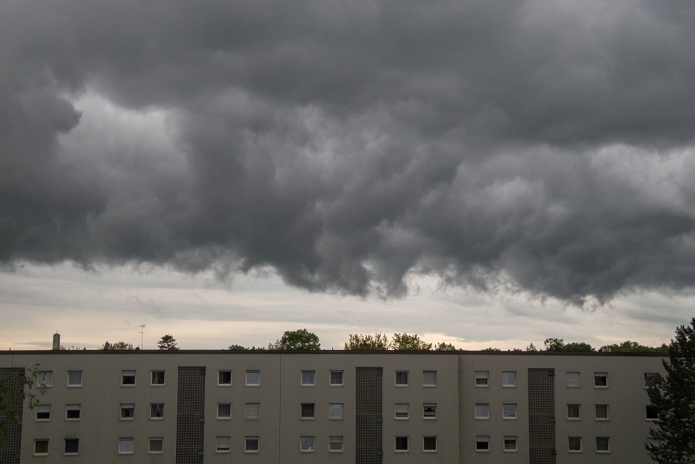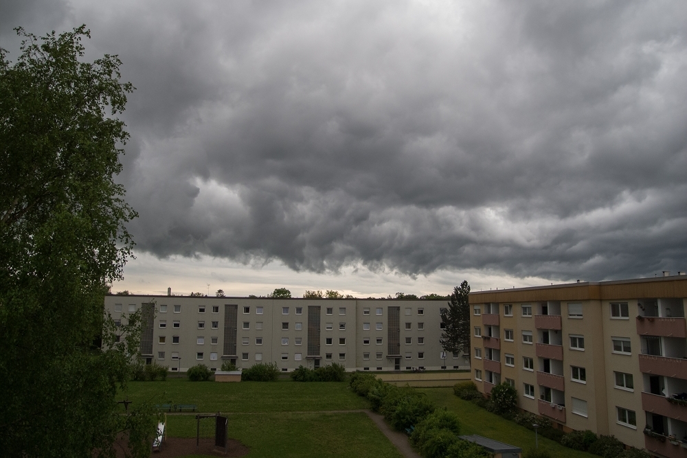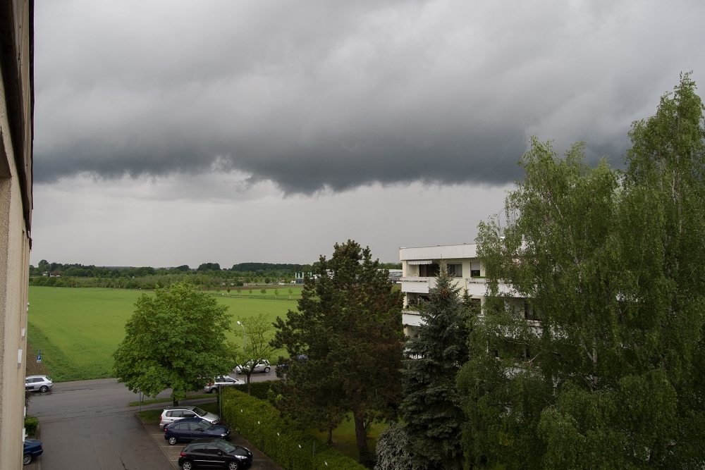 Bereits am Vormittag zog das erste Gewitter mit Böenfront von Westen heran:
