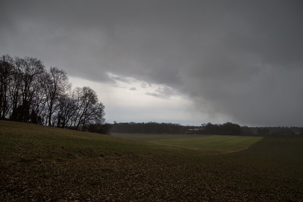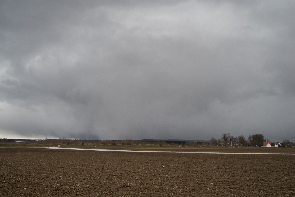 Ein kräftiger Schnee- und Graupelschauer mit Sturmböen nährt sich von Südwesten: