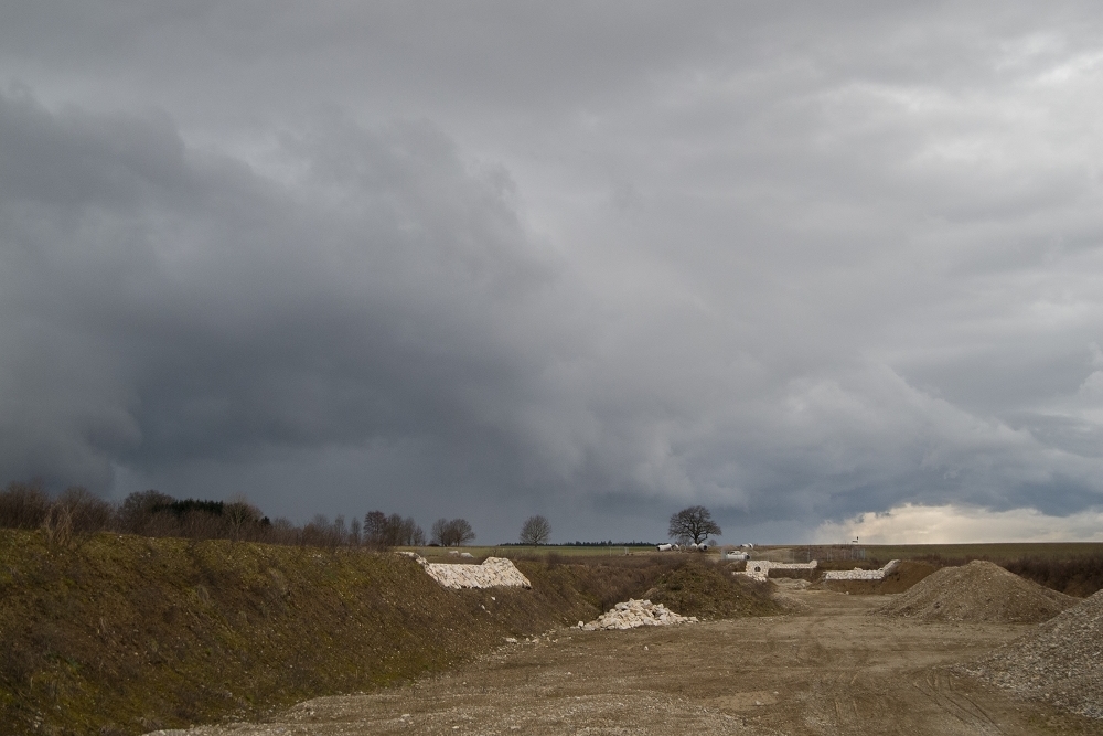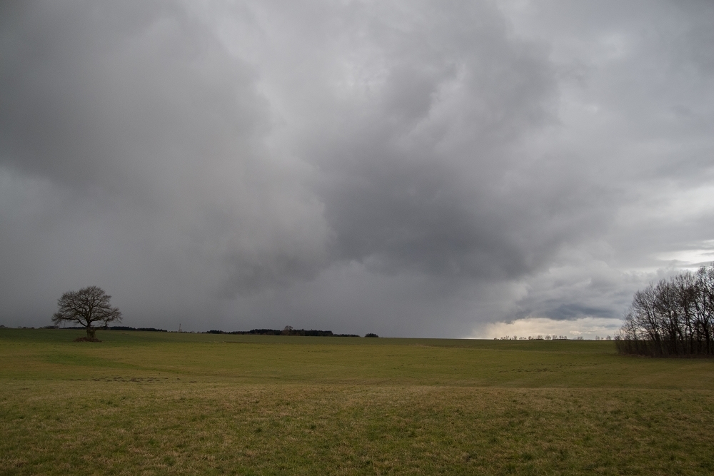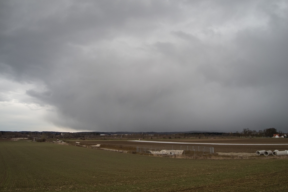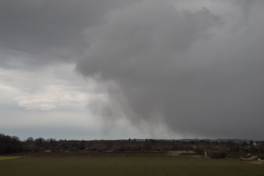 Nach Nordosten abziehendes Gewitter mit letzten Schneeflocken: