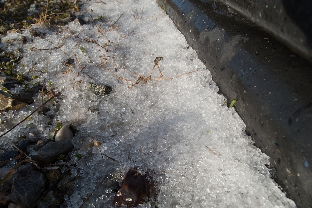 gab es nordwestlich von München. Direkt nach dem Gewitter war die Landschaft für kurze Zeit leicht angezuckert.