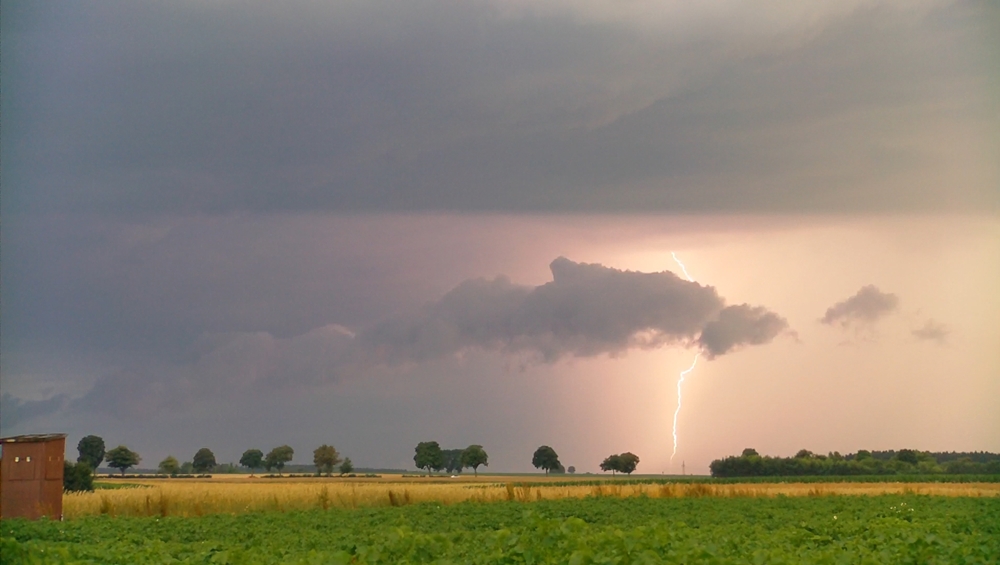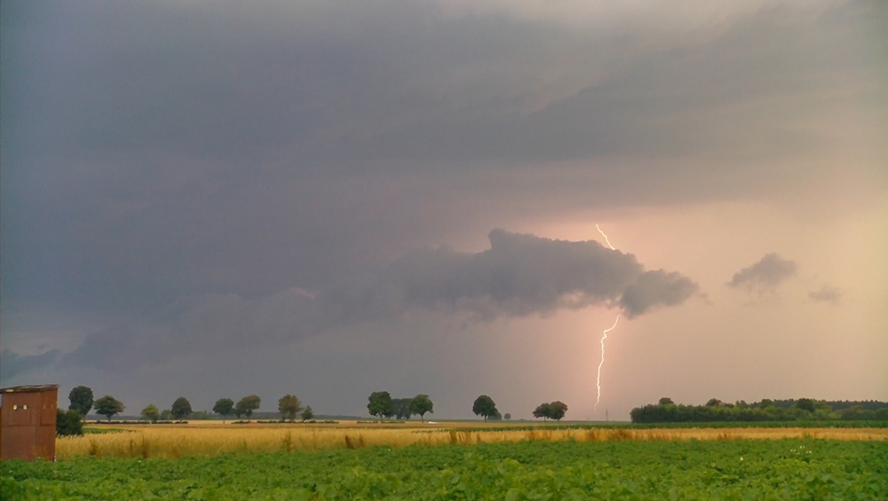 Am frühen Abend des 09. Juli 2011 gab es in Schöngeising im Landkreis Fürstenfeldbruck ein kräftiges Gewitter mit Starkregen und Erdblitzen. Vor dem Gewitter konnte ich noch interessante Wolkenstrukturen beobachten. Zum Abschluss gab es in Richtung München noch ein schönes Blitzfeuerwerk.