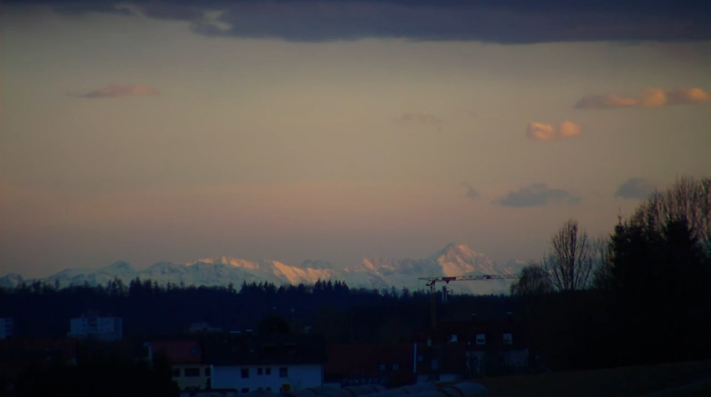 im Abendlicht in Richtung Ammersee beobachten. Derweil gab es durch Föhn eine gute Fernsicht auf die Alpen.