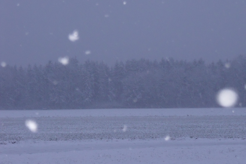 Über Nacht sind 5 Zentimeter Neuschnee gefallen, am Waldrand lag örtlich sogar noch mehr Schnee.