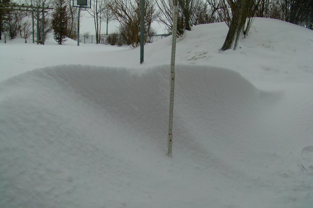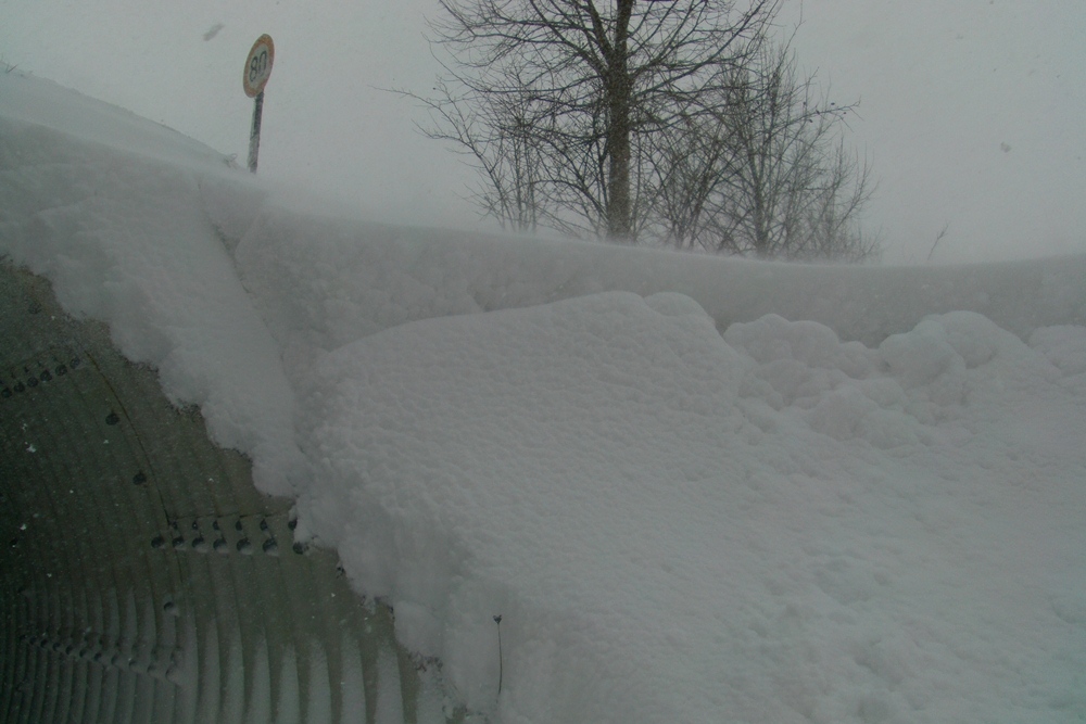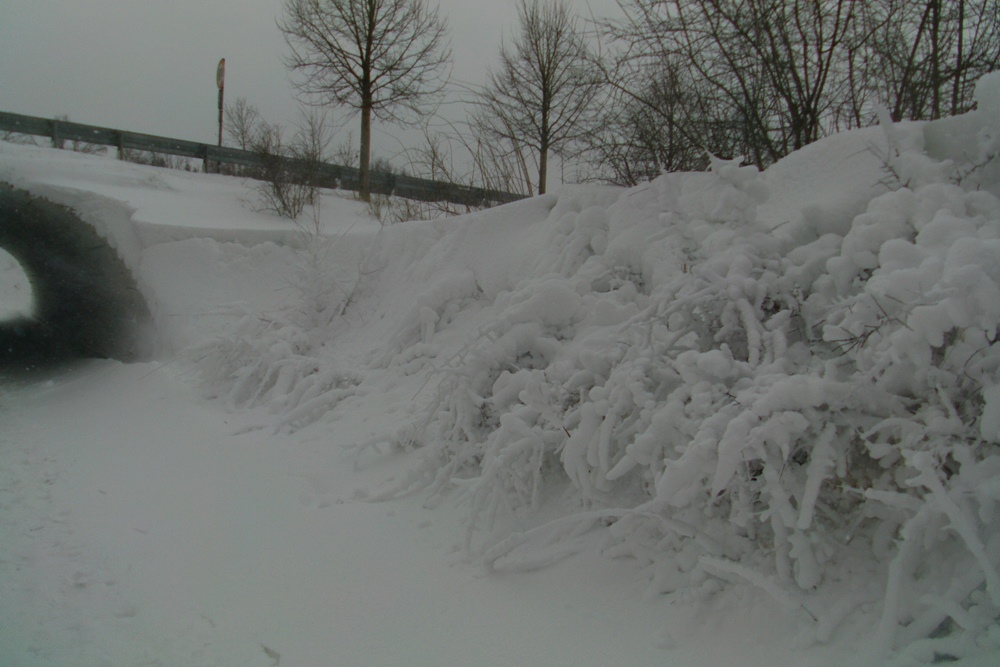 Schneefällen kam es zu hohen Schneeverwehungen auf den Straßen und Wegen. Bis zum Abend wuchs die Schneedecke auf etwa