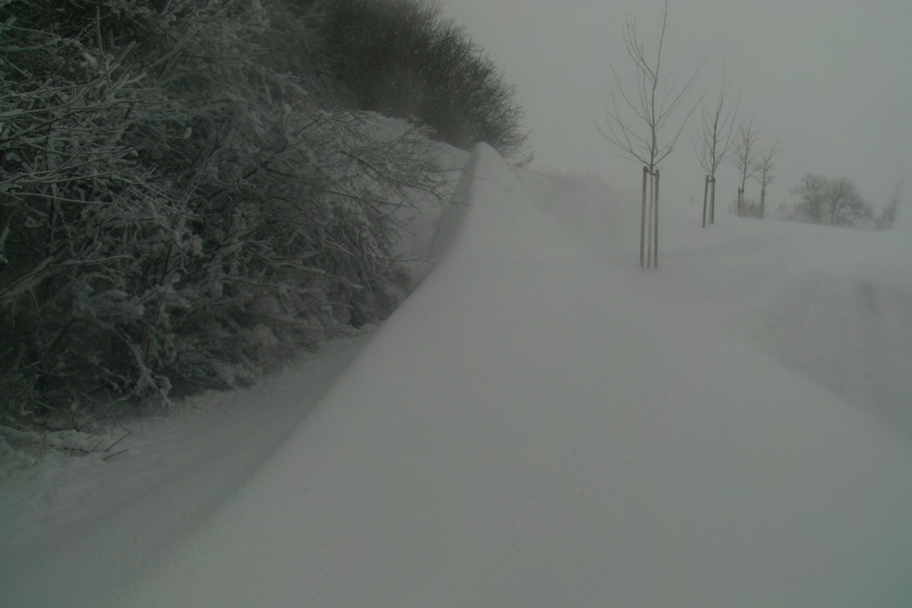 Schneesturm mit Verwehungen am 15.02.2012 und der Tag danach