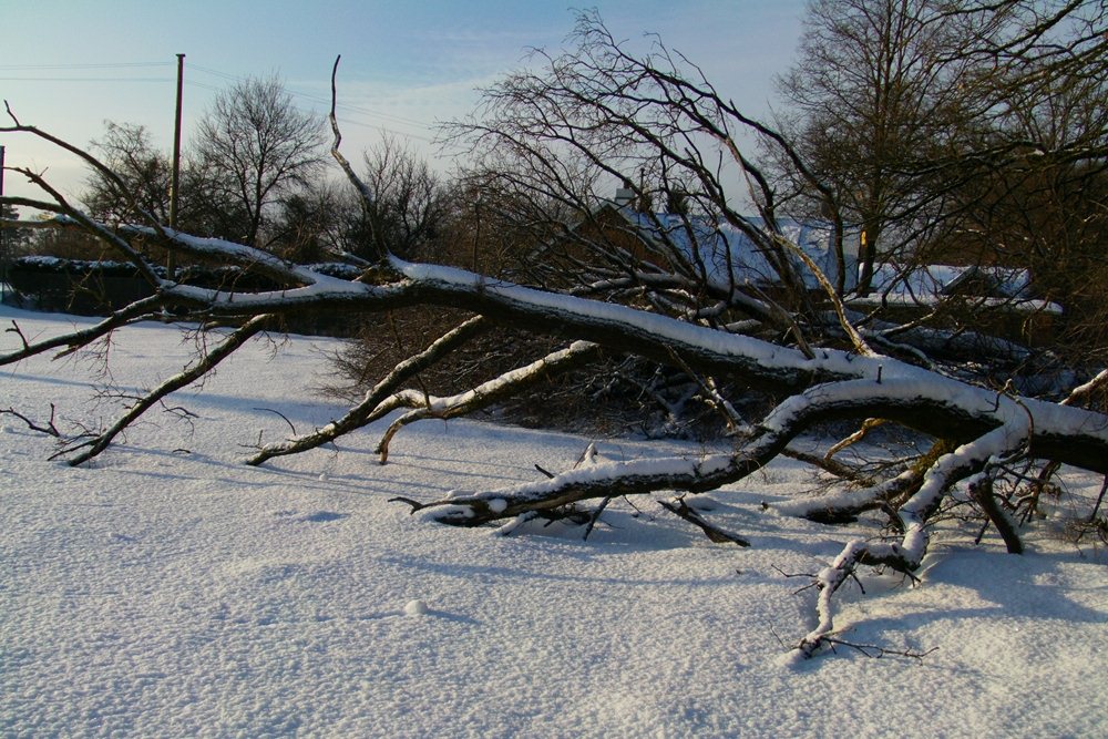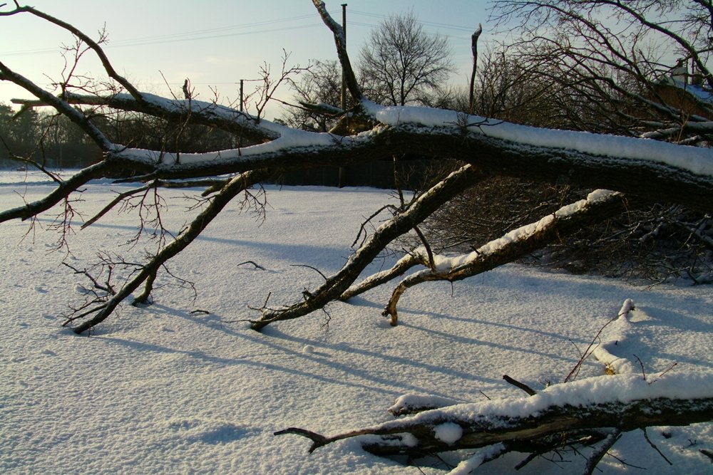 Umgestürzte Bäume nach dem Schneesturm