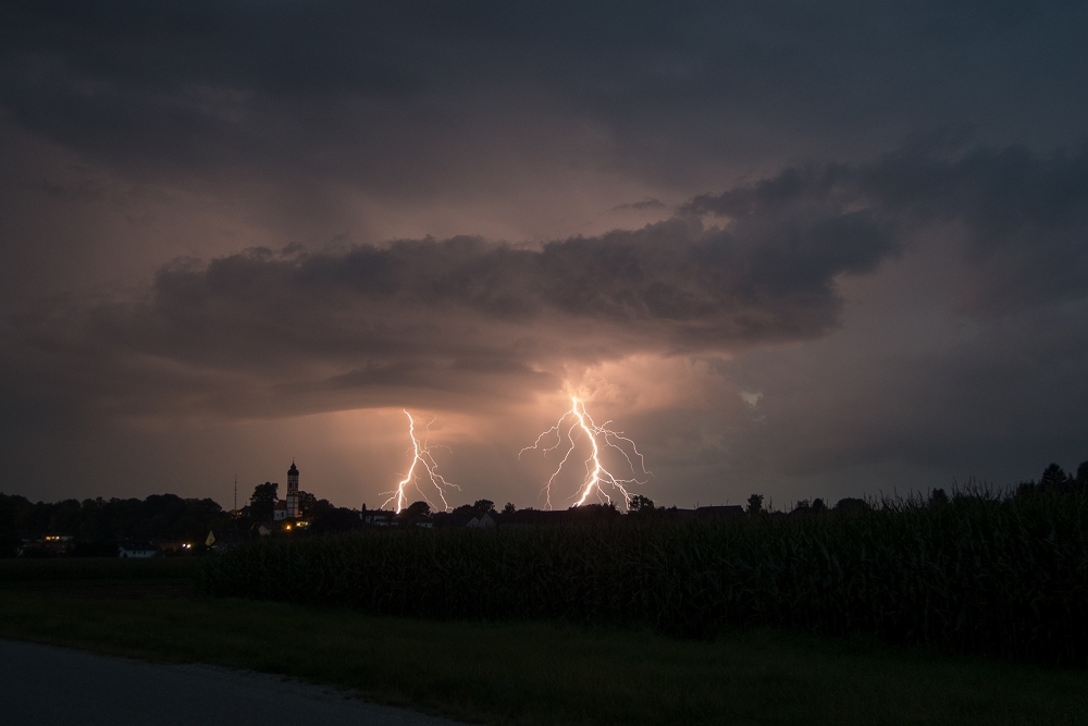 für diese Jahreszeit. So konnte man nördlich von Augsburg ein Blitzfeuerwerk mit kräftigen Erdblitzen und Starkregen beobachten.