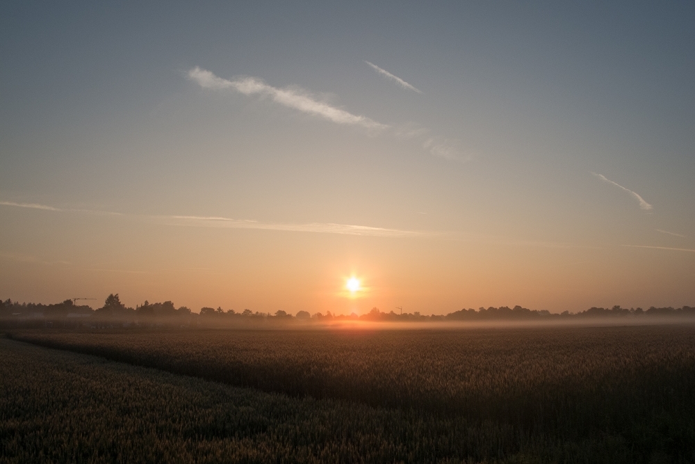 Am frühen Morgen des 19.05.2014 gab es in Südbayern einen wunderschönen Sonnenaufgang mit tollen Lichtstimmungen und Nebelschwaden.