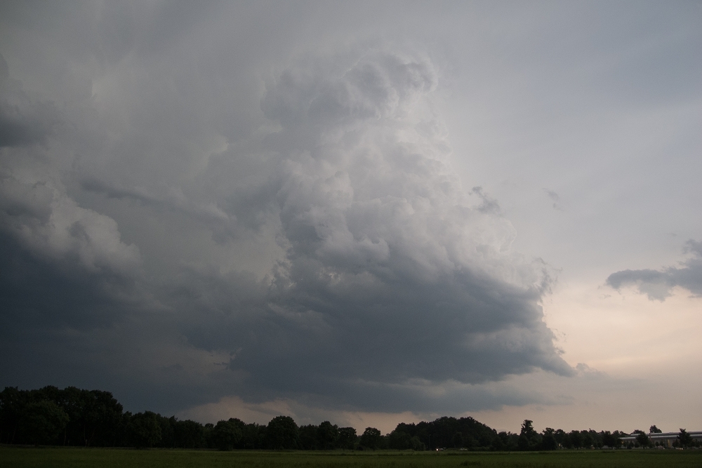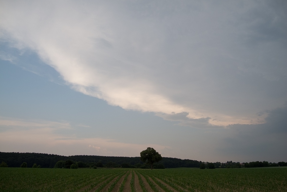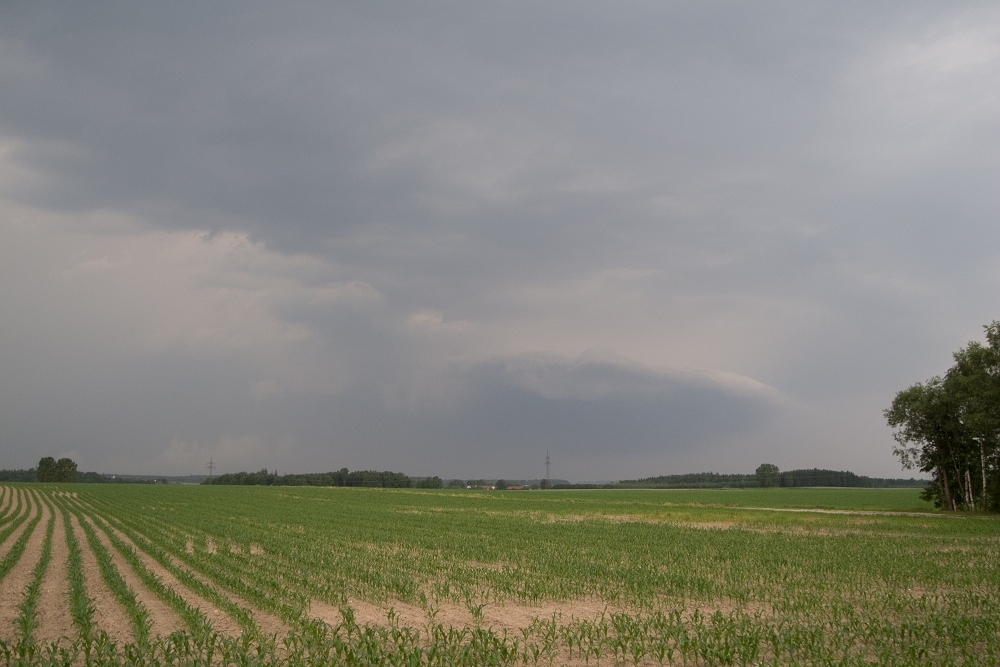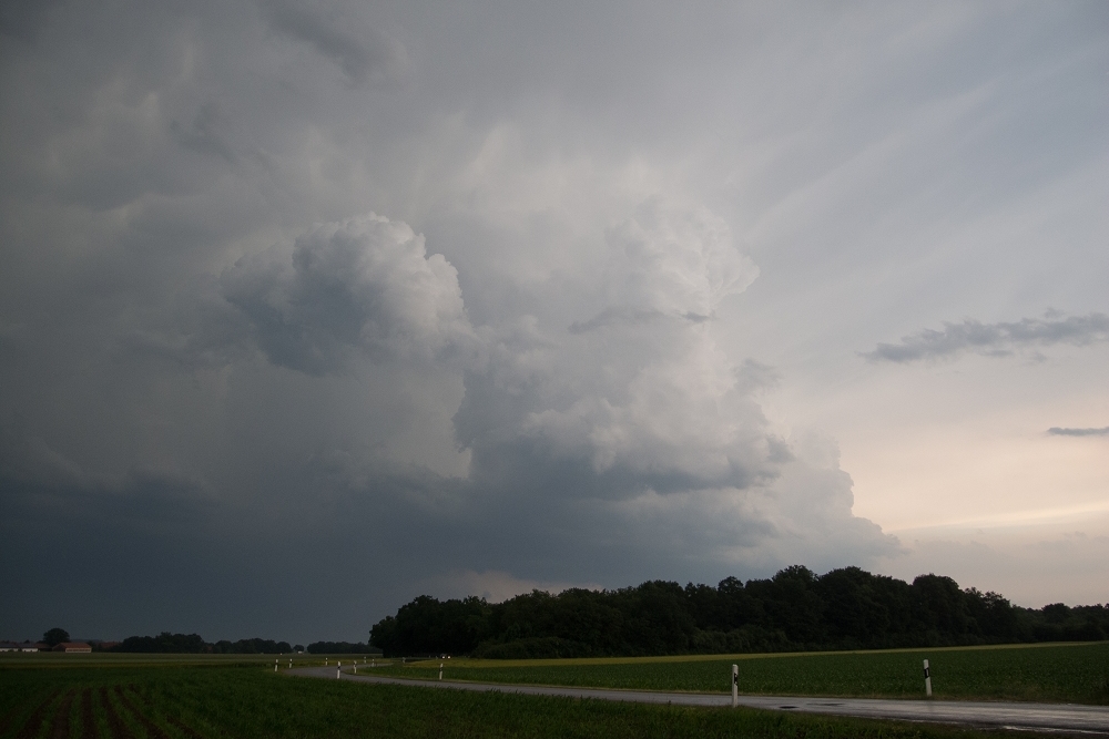 Eine Gewitterzelle schraubt sich über Mammendorf in den Himmel:
