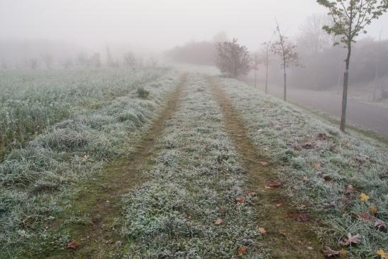 richtigen Luftfrost mit Tiefstwerten von -1,3 Grad und das bei dichten Nebel.