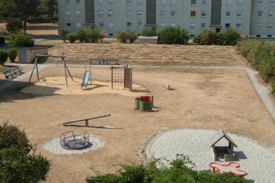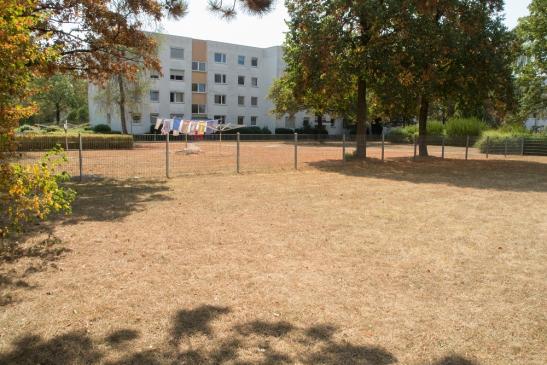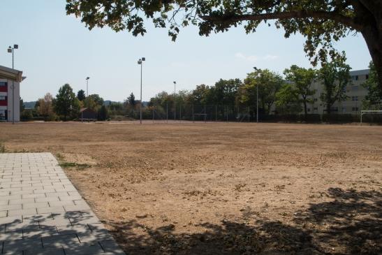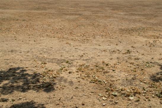vom Baum, weil sie nicht mehr mit genügend Wasser versorgt werden konnten. Dazu die gelben bzw. braunen Rasenflächen,