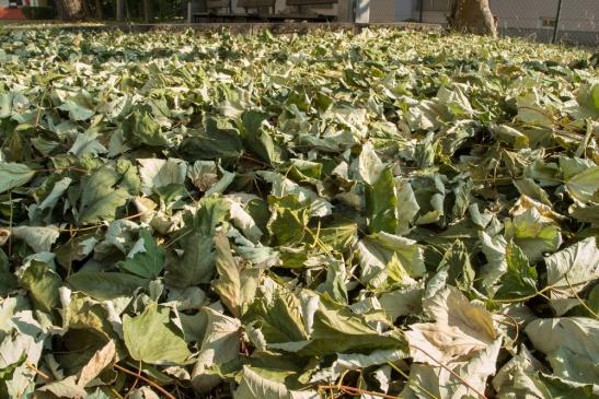 noch nicht mal der Herbst begonnen hat, färbten sich die Blätter allmählich bunt oder fielen noch völlig grün „vertrocknet”