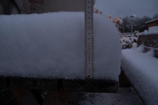 als Zwischenfazit im Schnitt 12 bis 14 Zentimeter Schnee. Schon morgen Vormittag am 29.12 kommen
