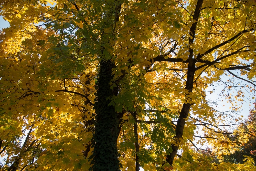 Strahlender Sonnenschein und buntes Herbstlaub:
