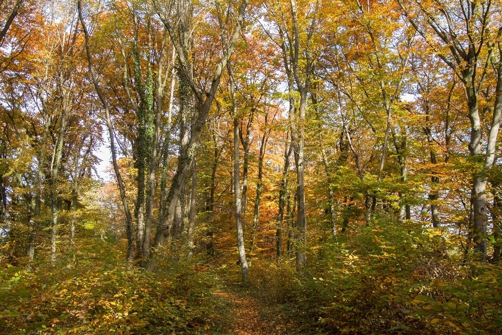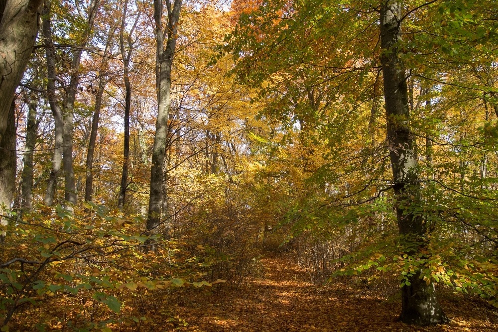 Viele Waldwege sind mit Laub bedeckt, unter den Füßen raschelt das trockene Laub: