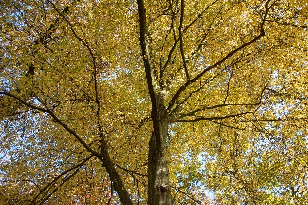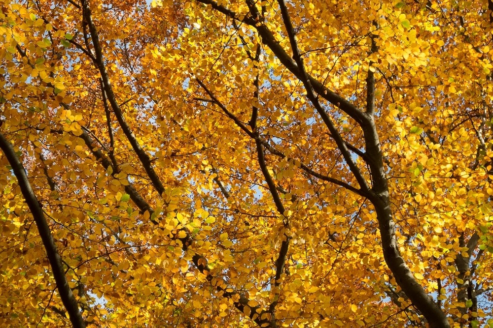 Ein schöner Farbkontrast: Ein blauer Himmel und goldenes Herbstlaub: