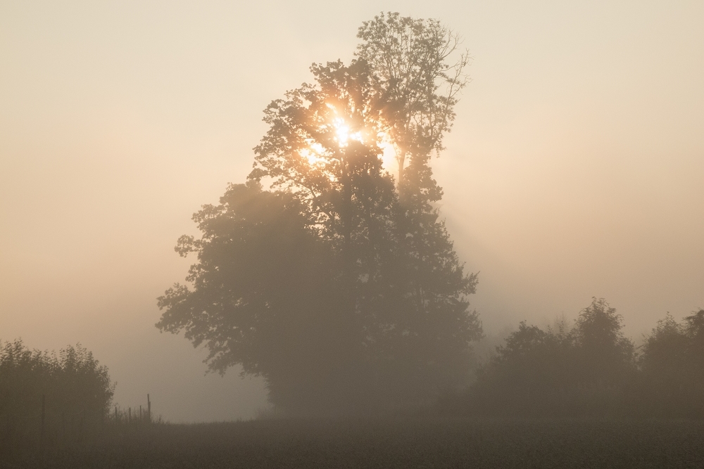Herbstes sind auch schon da. Am frühen Morgen liegen inzwischen immer öfter Dunst und Nebel über dem Land.