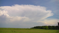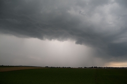 In der Gewitterwolke herrschen starke Aufwinde, die unter Umständen verhindern, dass kleinere Regentropfen aus der Wolke nach unten fallen.
