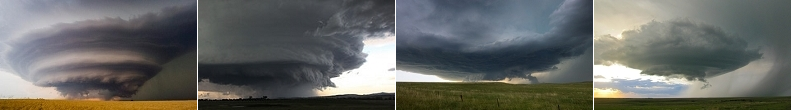 Mit dieser Art der Superzelle ist auch bei uns zu rechnen. Im Prinzip ist diese Form weit verbreitet und ebenfalls oft von atemberaubender Form, da hier eine große Basis und ein großer Abwindbereich vorzufinden sind. Hinzu kommt, dass oft große Böenfronten anzutreffen sind, häufiger schwere Sturm- oder Orkanböen auftreten und unter der Basis große Wall Clouds entstehen, die später auch Tornados hervorrufen können. Um sie rasch von der LP-Superzelle unterscheiden zu können, bleibt noch zu erwähnen, dass der Extremniederschlagsbereich wie auch die gesamte Zelle an sich auch auf dem Radar erkennbar größer ist, meist häufiger Tornados produziert und ebenfalls extrem gefährlichen Hagelschlag hervorruft - doch dies ist natürlich bei allen Formen von Superzellen der Fall.