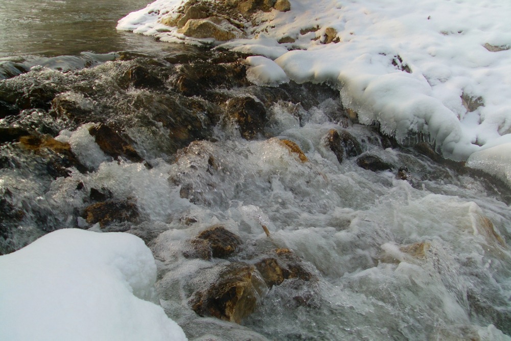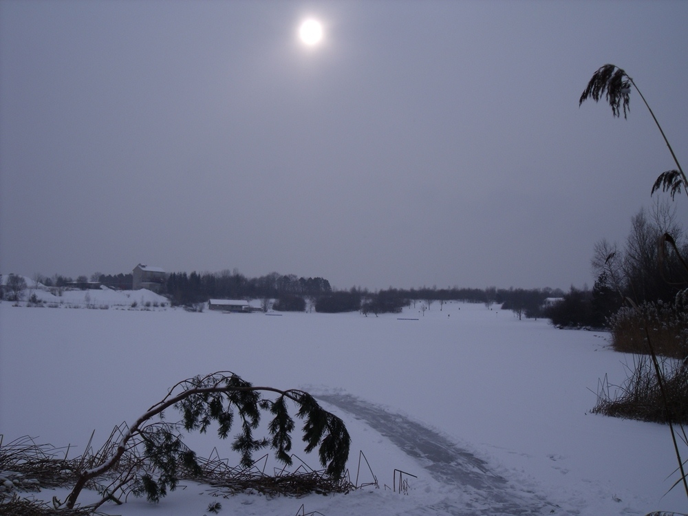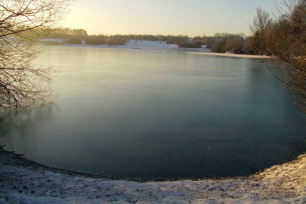 Schneegriesel und Sonnenschein am Pucher Meer in Fürstenfeldbruck am 07.02.2012